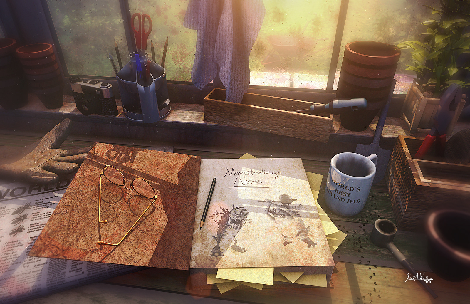 Grandpa's Super Secret Monsterlings Book! A scene from the upcoming Monsterlings animated movie and children's Book Series.