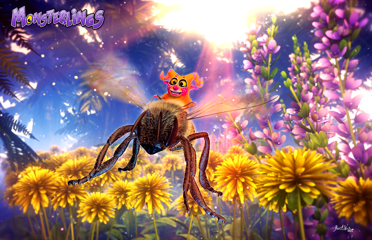 This is a evening view of one of the Nabbis of the Budlings. The Budlings make there small houses out of mud, grasses and clay and build them on the Polypore mushrooms that grow naturally around the local trees of their forest. They are very creative creatures and paint their homes to represent their family, like a crest, using local berries and flowers.