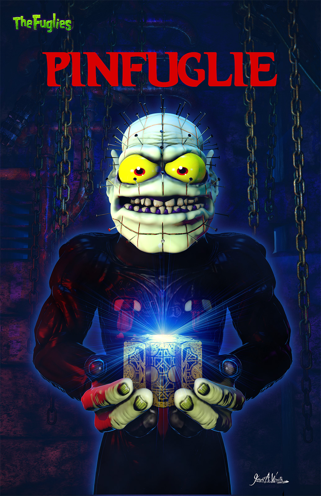 Pinfuglie is a satirical caricature of Universal Monsters Hellraiser's Pinhead using my 70s monsters styling.