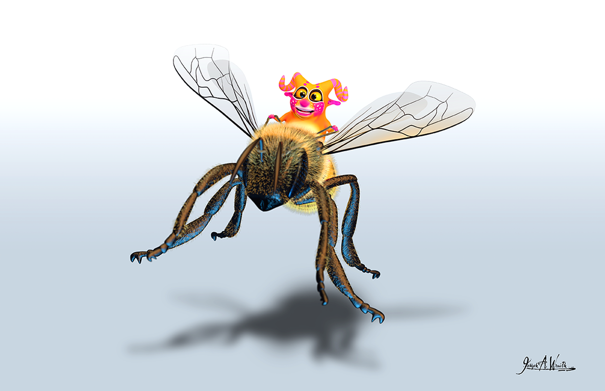 Telior Rides a Bee - 3d Version ©2015 Copyright, Joseph A. Wraith